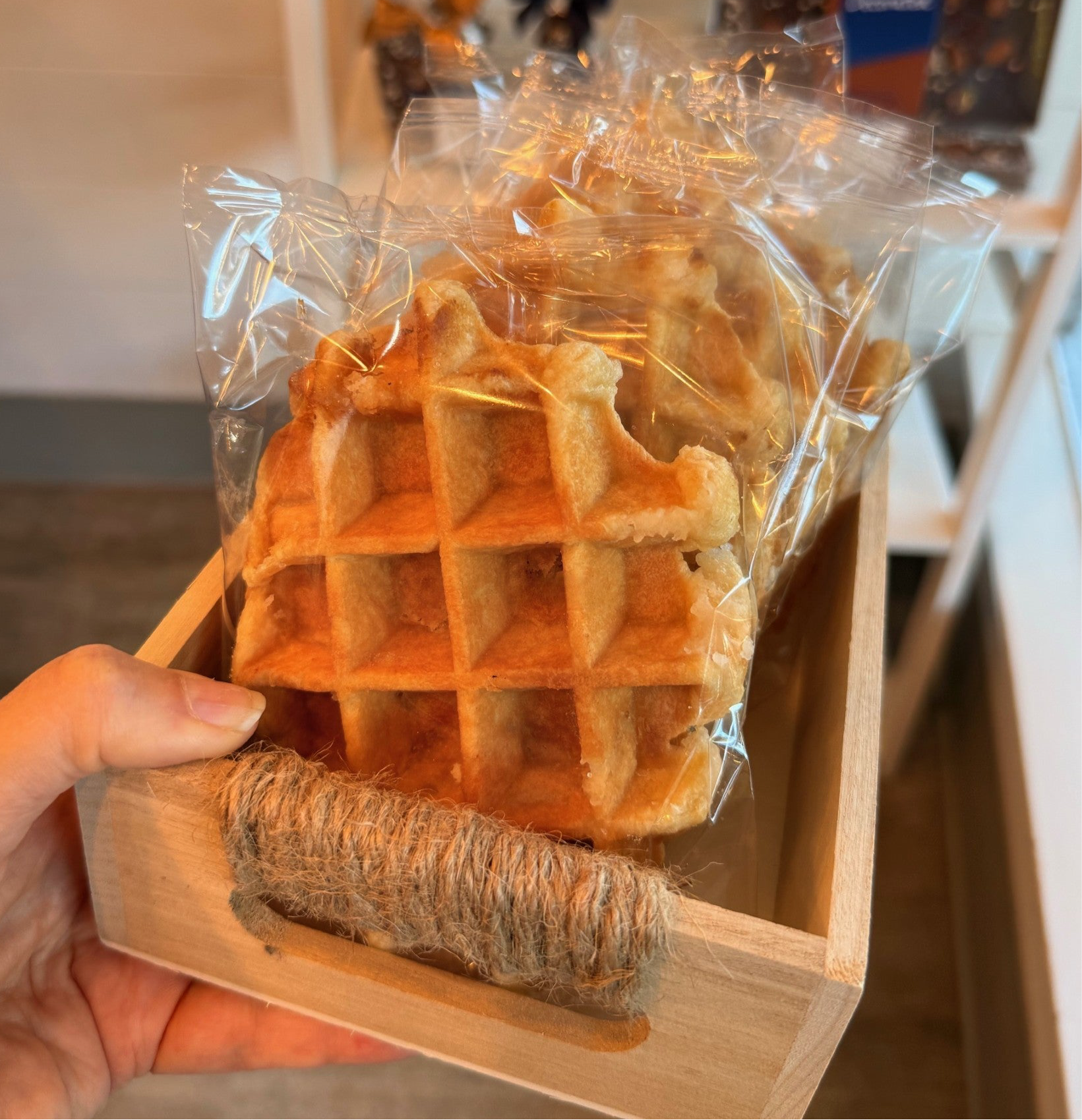 These authentic Belgian Liege Waffles are sooo good! Big enough to share, but once you have tasted these delicious treats, very hard to give up the other half. Perfect on their own, but even better with a cup of coffee or tea. Just the right amount of sweet!!