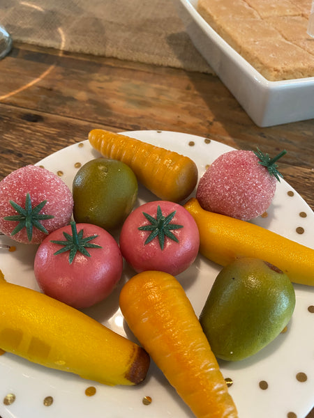 Marzipan is a confection consisting primarily of sugar, honey and ground almonds. It is a very common and well-loved sweet in most European countries. Our amazing marzipan is hand-crafted in Belgium using traditional techniques - a rich, yet light and airy texture with just the right amount of sweetness. Beautifully hand-colored with food-safe, natural coloring, they look amazing on a dessert plate. And, they are absolutely delicious. Warning -- try this marzipan once, and you might be addicted for life!