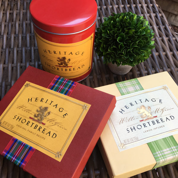 Have you been searching for the the very best shortbread on the planet? If so, you are in the right place. We are not ashamed to say that we are shortbread snobs here at Love + Chocolate. We've wanted to carry a shortbread for awhile now -- to add to all our other amazing European confections -- but we just couldn't find one that met our standards until now! This Heritage Shortbread is made by descendants of the Scottish McGrain clan from a centuries-old family recipe. This amazing, buttery, melt-in-your-mouth shortbread is simply the best you will ever eat. We have two sizes to choose from, 8pc and 18pc, and carry both the Original and Lemon infused flavor.